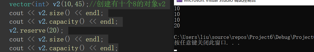 vector<int> v2(10,45);//创建有十个8的对象v2