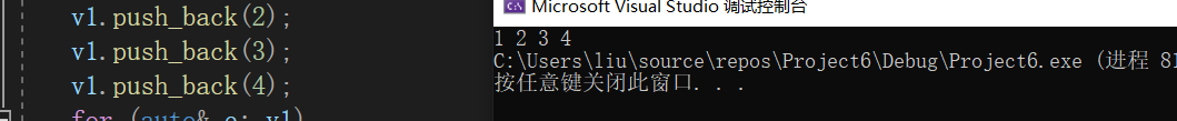 vector创建对象的过程也就是它调用其构造函数和拷贝构造的过程,我们也可以将s中字符串存入容器v5中。