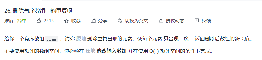 ⭐定义变量 int dest=0,cur=1,flag=1(表示0到dest,nums[dest]只出现过一次)。