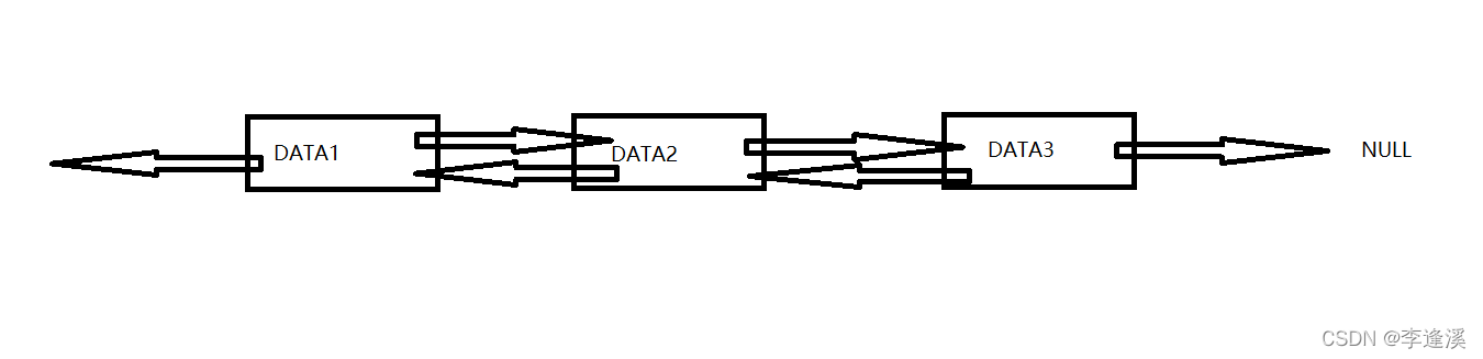 指的是节点中不再只有一个指针,而是有两个指针,一个指向前一个节点,另一个指向后一个节点。