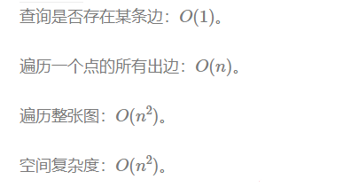 方法:使用一个二维数组 g 来存边,其中 g[u][v] 为 1 表示存在 到的边,为 0 表示不存在。如果是带边权的图,可以在 g[u][v] 中存储到的边的边权。