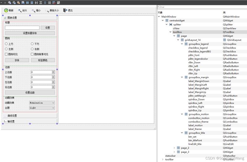 Qt Charts基于Qt的Graphics View架构,其核心组件是QChartView 和 QChart