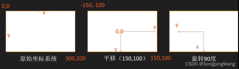 | 坐标变换 | void translate(qreal dx,qreal dy) | 坐标系统一定的偏移量,坐标原点平移到新的点 |