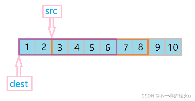 my_memmove(arr + 2, arr, 24);//预期出现结果为1 2 1 2 3 4 5 6 9 10