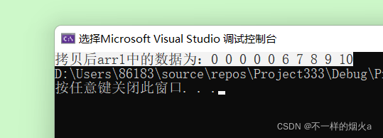 printf("拷贝后arr1中的数据为:");