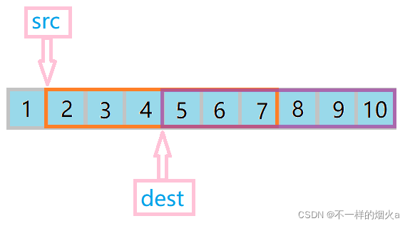 于是为了将自身的数据拷贝到自身不同的位置处,我们就需要用memmove函数来实现,memmove函数就是为了解决上面这种问题而被创造的。