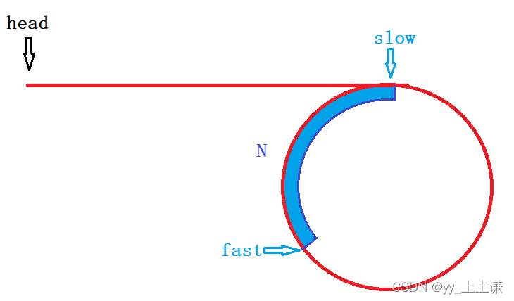 每次追击,fast与slow之间的距离就缩小1,当距离N缩小为0的时候,便追上了。