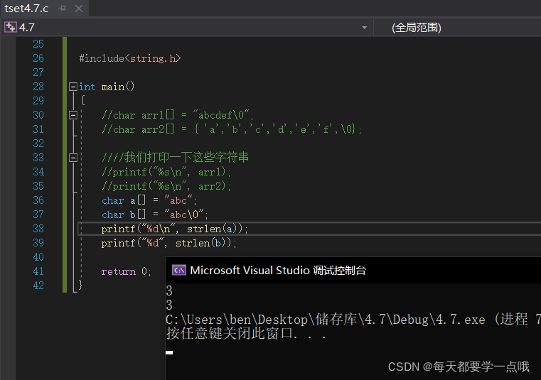 这个字符串的长度为3,所以我们可以知道看不见的\0并不算在长度里面的,就算在后面加上\0也是一样
