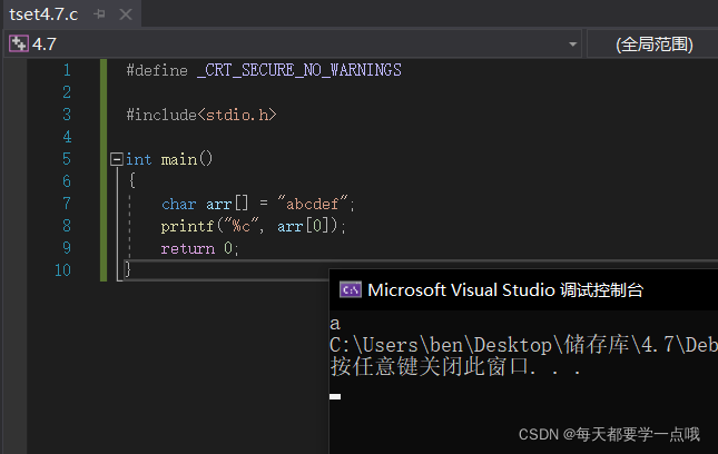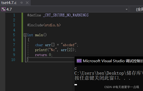 就这样,我们把"abcdef"这个数组储存起来了,那我们要使用里面的字符怎么办?我们还需要再了解一个知识: