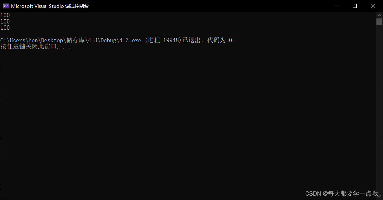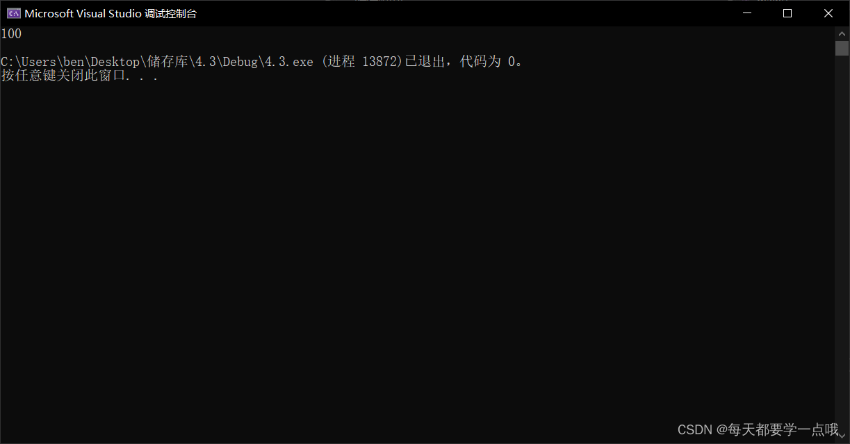 这个%d指的是打印(输出)的格式,即整型,后面的100是返回值,即打印的是100,\n的意思就像enter,空行的意思,如图: