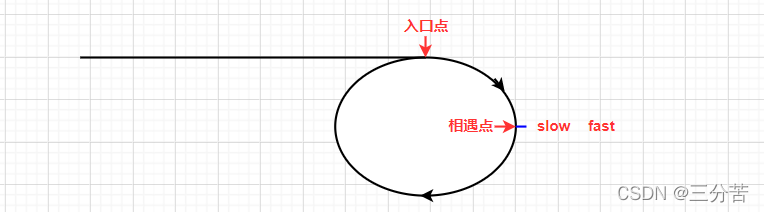 当slow走到直线一半的位置时,此时的fast刚好就在环的入口点。