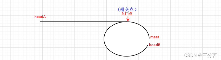 此法显的尤为巧妙,刚好转换成了两个链表求交点的问题。因为此时headA链表的尾部是meet,而headB链表的尾部也是meet,此时就意味着俩链表必会相交,而相交的地方就是入口点,两链表相交正是博主上篇博文中所详细讲解的,这里就不过多强调了。