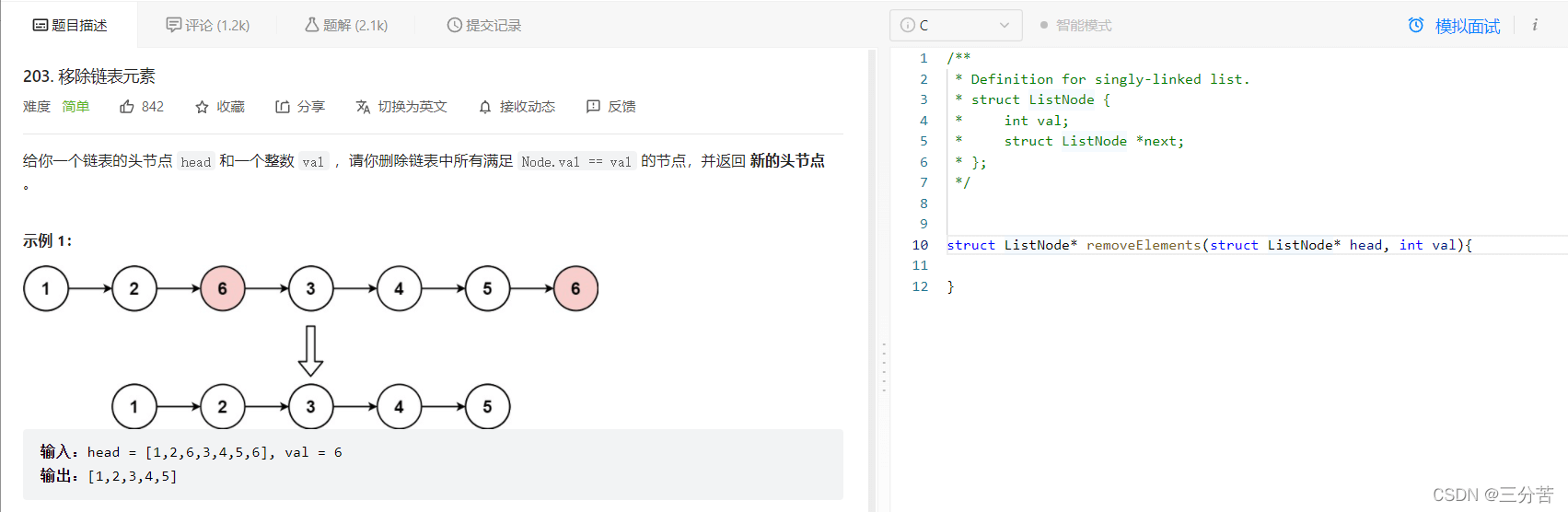 此题要综合考虑多种情况,常规情况就如同示例1,有多个节点,并且val不连续,但是非常规呢?当val连续呢?当头部就是val呢?所以要分类讨论
