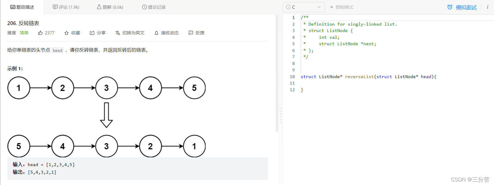 定义三个指针n1,n2,n3分别用来指向NULL,第一个数据,第二个数据。让n2的next指向n1,把n2赋给n1,再把n3赋给n2,再执行n3=n3->next的操作,接下来重复上述操作,直到n2指向空即可。但是要注意,要先判断该链表是否为NULL,如果是,则返回NULL,此外,还要保证当n3为空时就不要动了,直接把n3赋给n2即可。