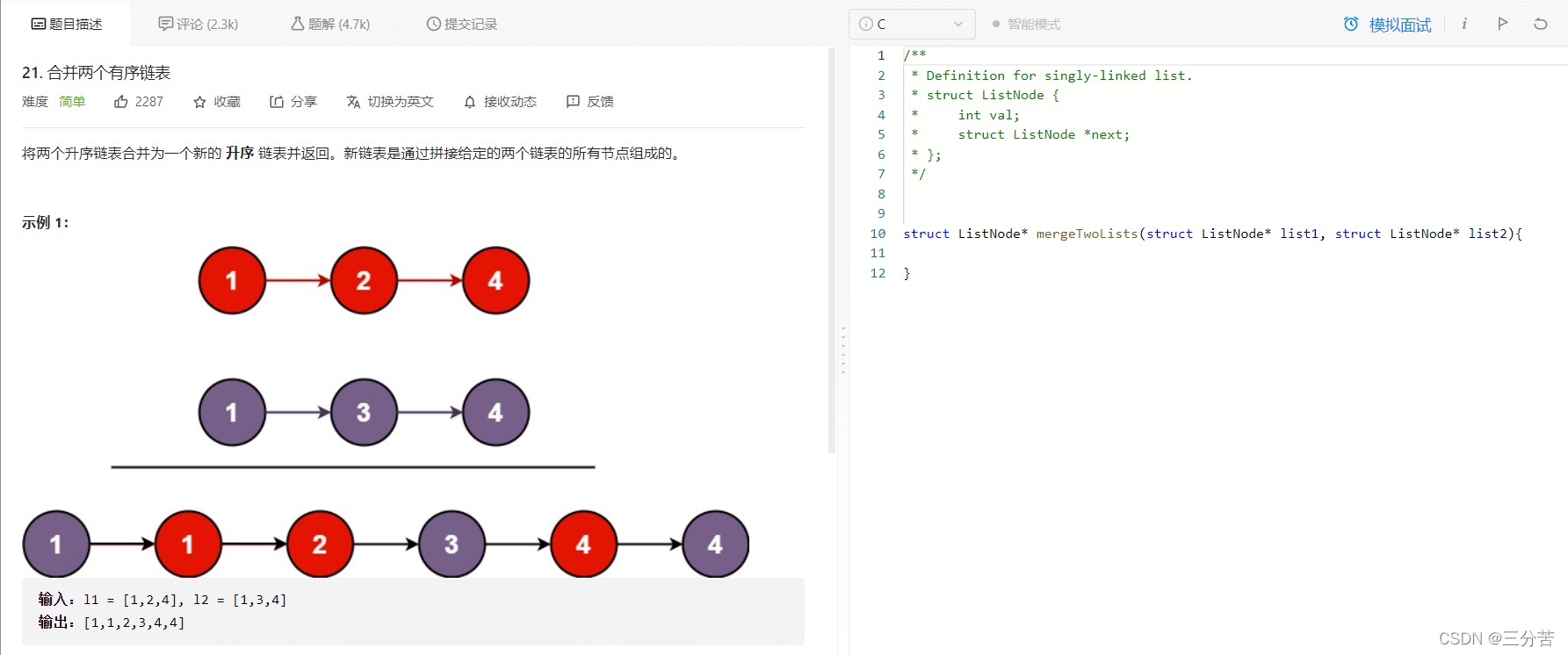 struct ListNode* mergeTwoLists(struct ListNode* list1, struct ListNode* list2){