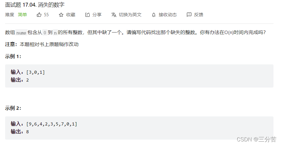 链接:https://leetcode-cn.com/problems/missing-number-lcci/