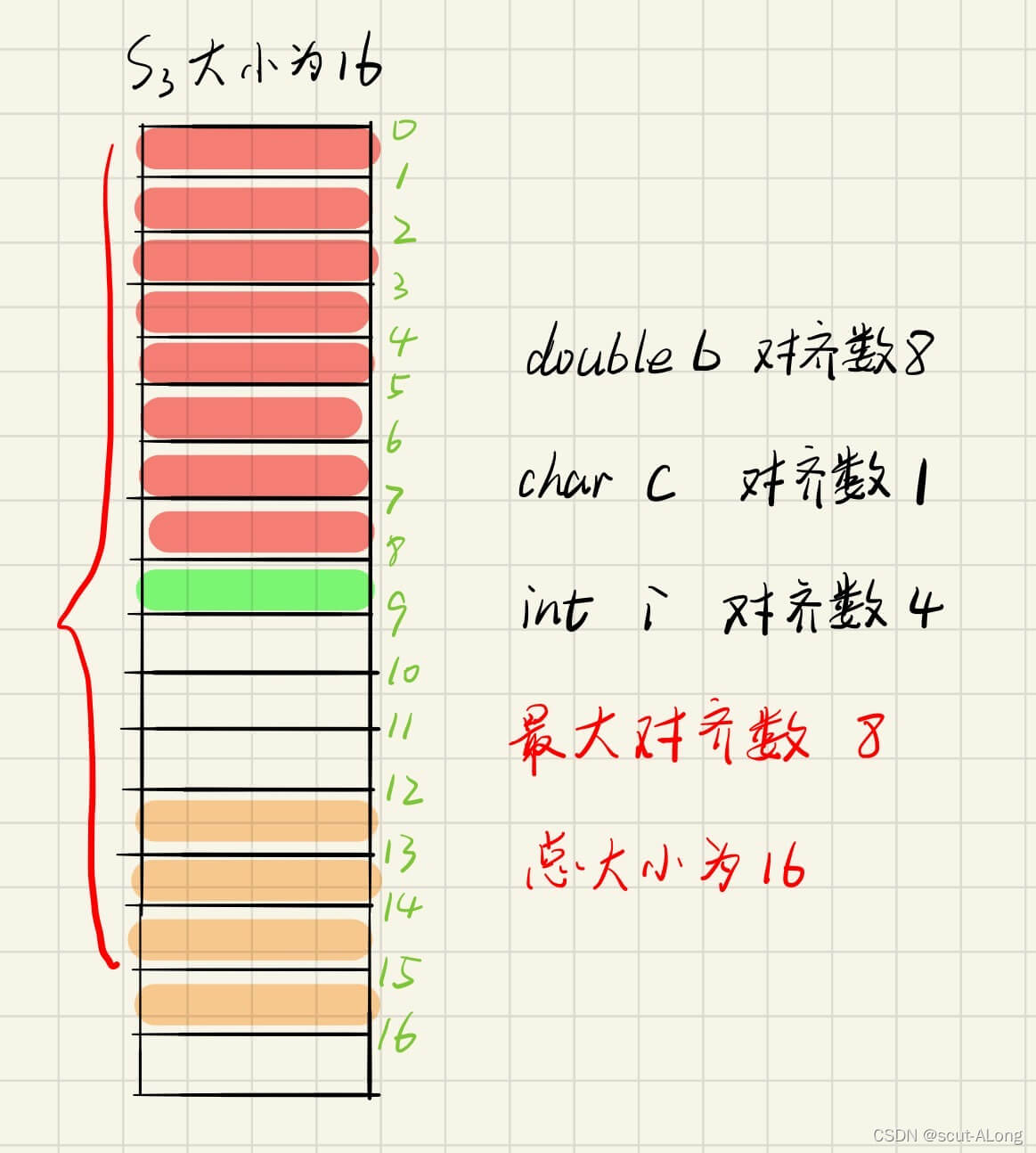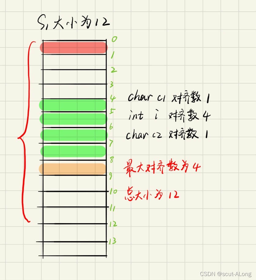 3.结构体总大小为最大对齐数(每个成员变量都有一个对齐数)的整数倍。