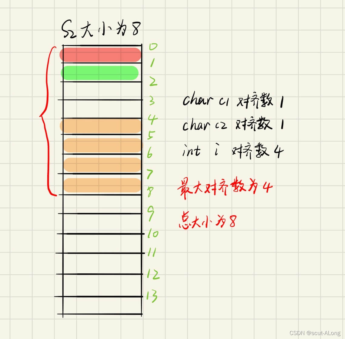 - 对齐数 = 编译器默认得一个对齐数 与 该成员大小的较小值 (VS中默认的值为8)