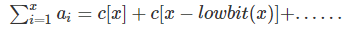 可以得到关系:c[x]=a[x−lowbit(x),x]