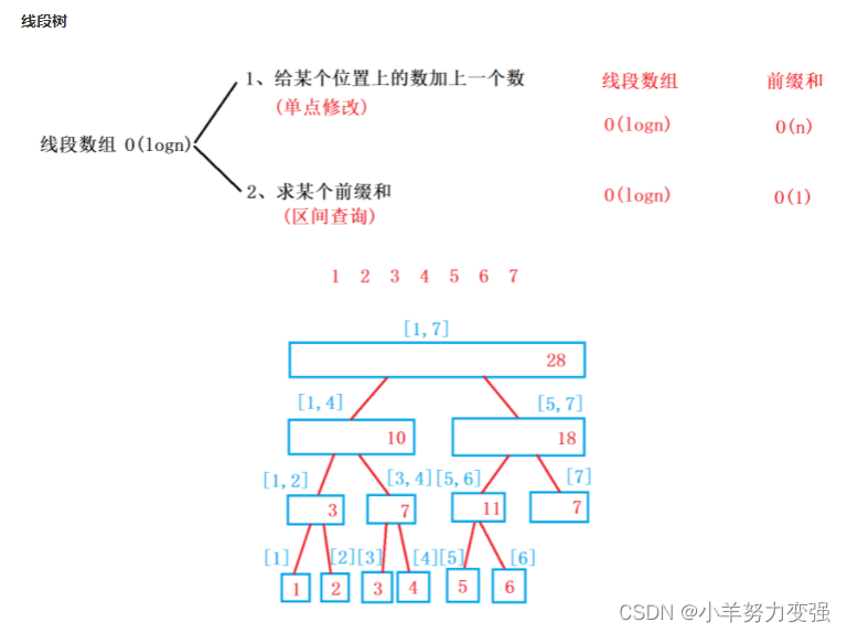 顾名思义,树状数组就是用数组来模拟树形结构呗。那么衍生出一个问题,为什么不直接建树,因为树状数组能处理的问题就没必要建树。线段树是一种二叉搜索树,与区间树相似,它将一个区间划分成一些单元区间,每个单元区间对应线段树中