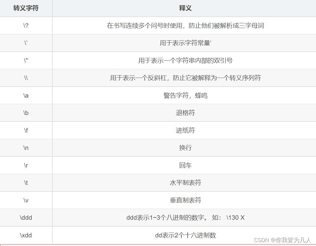 相当于添加一个符号来转变原来的意思,那是不是什么字符都可以添加一个字符转变呢?其实并不是,如下几种是常见的转义字符: