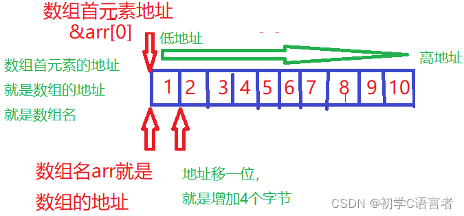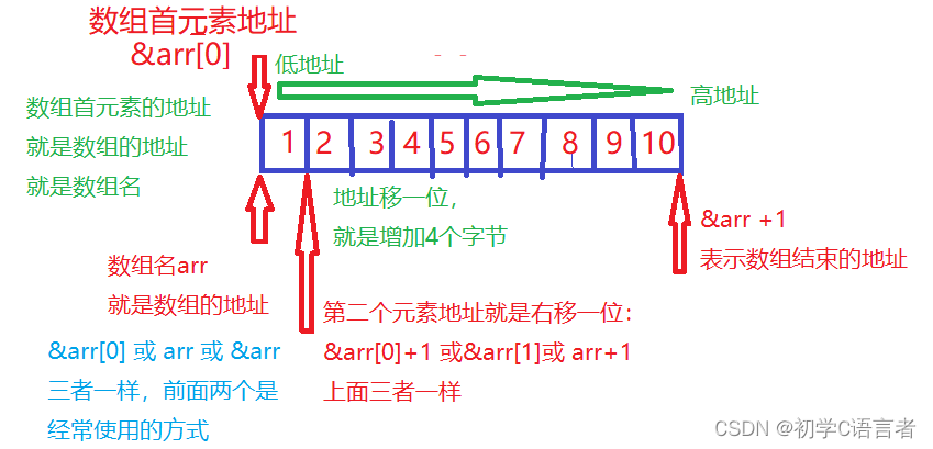 //arr表示首元素的地址, &arr[0],也是首元素的地址