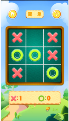 但是上述代码还有一个小问题,在判断每一行、每一列、对角线上,三个棋子是否相同时,代码直接写固定的3个,如果将棋盘改成5行5列的五子棋时,这里就会出现问题了。这里留到以后在修改成能适应五子棋的游戏。三子棋的代码实现就告一段落了。