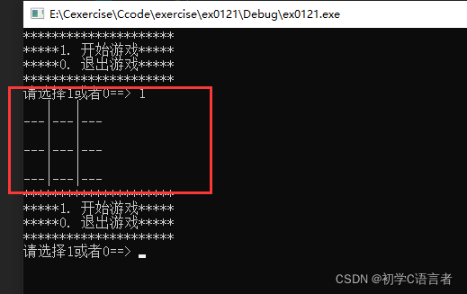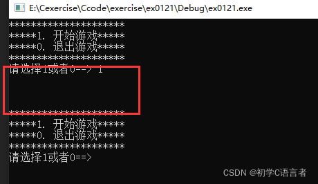 printf("请选择1或者0==> ");//1代表玩,0代表退出游戏