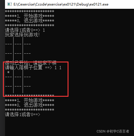 3、下棋开始前先初始化棋盘,在打印出棋盘