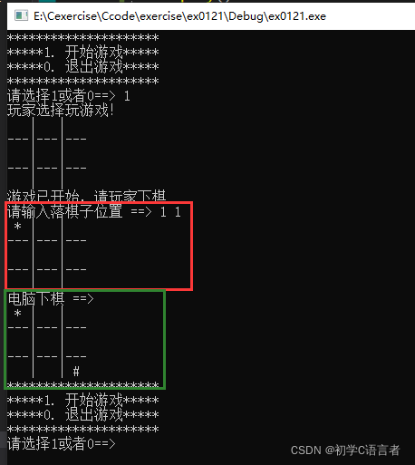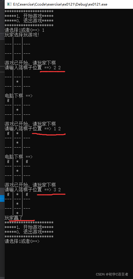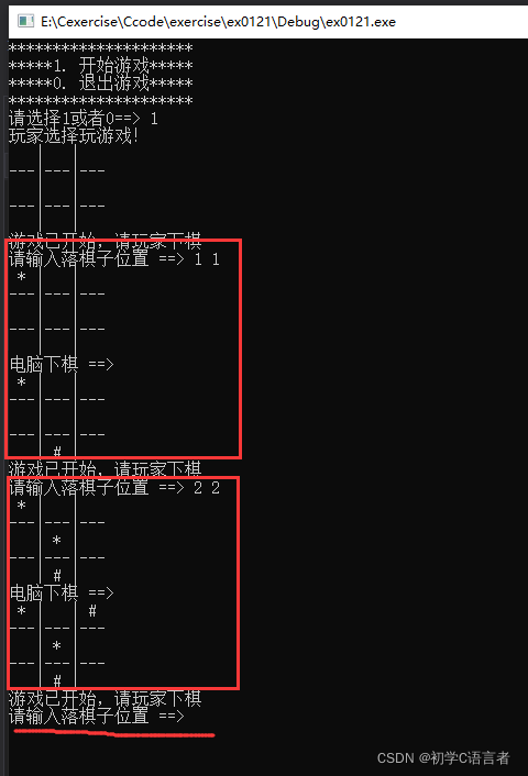 (3)返回 *,代表玩家赢; 返回 #,代表电脑赢;返回 c,代表平局;