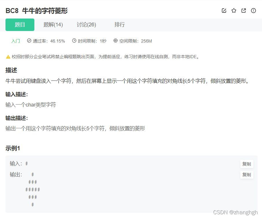制造一个字符菱形,我们先需要定义一个他的大小,也就是行数,一个完美的菱形,它的行数一定是单数。
