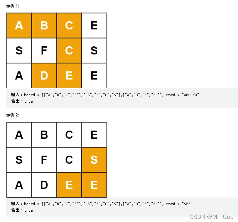 给定一个 m x n 二维字符网格 board 和一个字符串单词 word 。如果 word 存在于网格中,返回 true ;否则,返回 false 。