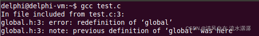 在然后由于test.c 里面又定义一个#include "global.h",又把int global = 10; 复制过来,造成了重复定义。