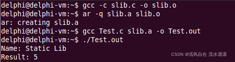 - 使用静态库编译:gcc main.c lib.a -o main.out