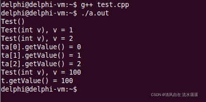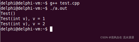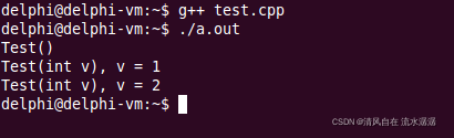 }下面为输出结果,可以看到与上面的代码输出结果一模一样。这就因为 C++ 中初始化和赋值不同,初始化会调用构造函数,赋值的时候则不用。