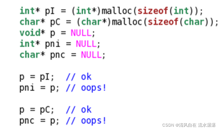 - void* 指针作为右值使用时需要进行强制类型转换