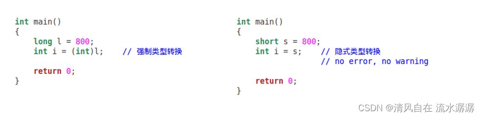 低类型到高类型的隐式类型转换是安全的,不会产生截断