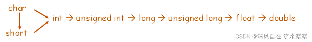 - 赋值表达式中,表达式的值转换为左边变量的类型
