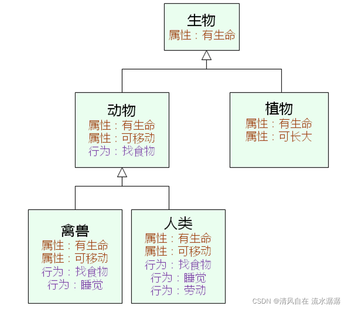 - 从已存在类细分出来的类和原类之间具有继承关系( is-a )