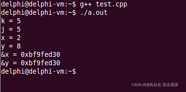 还有一个问题就是 x 和 y 值的问题。x 是一个真正意义上的常量,所以编译期间值确定了就是2,但是编译器要兼容 C语言,所以会给 x 在栈空间分配了4个字节的空间出来,使用 const_cast 作用于它就相当于给这 4个字节空间取了一个别名 y,令 y = 8,就相当于给这 4个字节栈空间中的 int 变量赋了一个值 8。所以打印出来的 x 和 y的地址值是一样的。