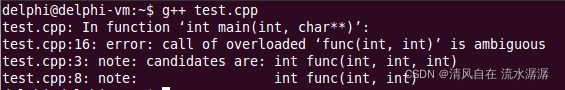 - 最终寻找到的候选函数不唯一,则出现二义性,编译失败。