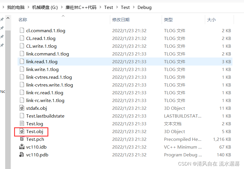 编译器是如何看待这两个 add() 函数的呢?下面来深入分析。先看一下编译器产生的中间结果,在Test -> Debug -> Test.obj 文件中。