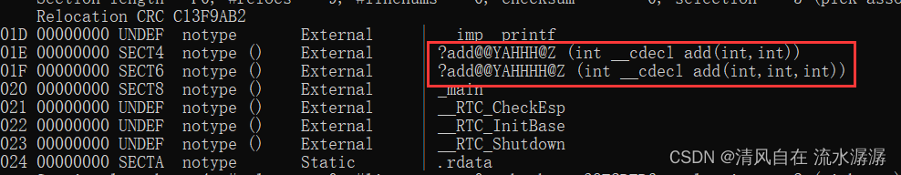 可以看到,两个 add() 函数的入口地址不一样,所以这两个 add 是两个不同的函数。
