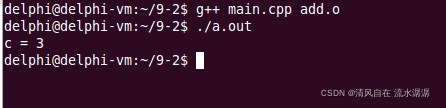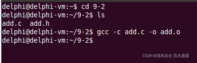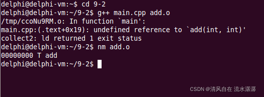 int add(int a, int b);通过 linux 命令 cd 进入 9-2 文件夹,再将 add.c 转换成 add.o 文件,如下所示: