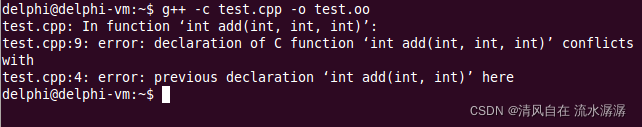 }下面为编译结果,可以看到编译报错,说两个 add() 函数冲突了。