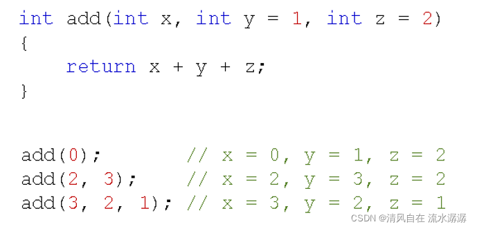 - C++ 中可以在函数声明时为参数提供一个默认值