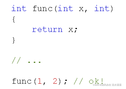 - C++ 中支持占位参数,用于兼容C语言中的不规范写法