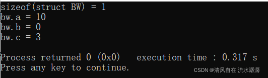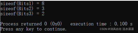 printf("sizeof(Bits3) = %d\n", sizeof(struct Bits3));