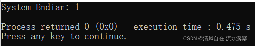 由代码可知,1 存在低位,所以我的电脑为小端系统。