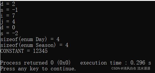 这段代码也说明了 enum 枚举类型的本质就是整型。